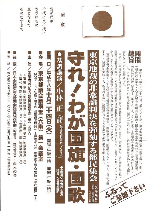 | 東京地裁の非常識判決を弾劾する都民集会 平成十八年十月二十四日 | ||