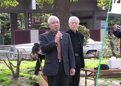 細田議長の挨拶(向かって、細田、池田、殿岡各氏)