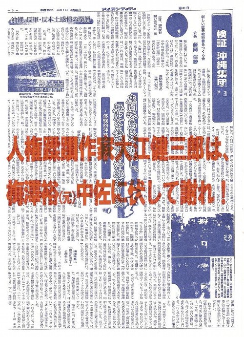 ノーベル賞作家、大江健三郎さん(73)の著作「沖縄ノート」などで、沖縄戦で集団自決を命令したと虚偽の記述をされ名誉を傷つけられたとして、旧日本軍の戦隊長らが大江さんと出版元の岩波書店に、出版差し止めと慰謝料3000万円の支払いを求めた訴訟の控訴審判決が31日、大阪高裁であった。小田耕治裁判長は請求を退けた1審・大阪地裁判決を支持し、原告側の控訴を棄却した。原告側は上告する方針。