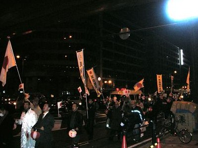 | 午後5時 うつぼ公園を元気に出発 | 今回は先導車にマイクロバスを使用 それでも最後部までアナウンスが聞こえない! | |||||