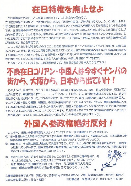 平成20年12月6日 在日特権廃止と不良在日の排除を求めて難波街宣