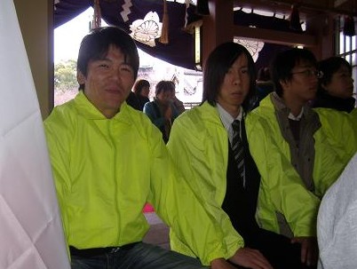 | 柳澤宮司を真ん中に・・今年もがんばろう! 初シュプレヒコール! | 参拝後正殿をバックに・・・神様にお尻を向ける・・・正月早々罰当たりな? | ||||||