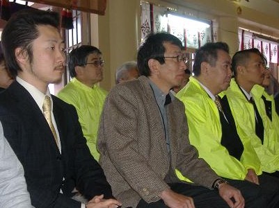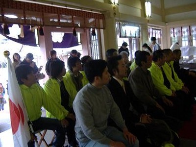 | 正式参拝・・・去年の罪の数々が一つ一つ走馬灯のように。 14名参加。玉ぐし料、1000×14・・・14000円.こんな半端な金額を払った人は神社始まって以来では。 |