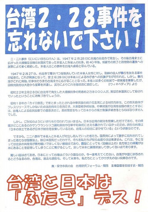 大阪梅田で街宣 228事件を忘れるな。日本と台湾はふたごです。