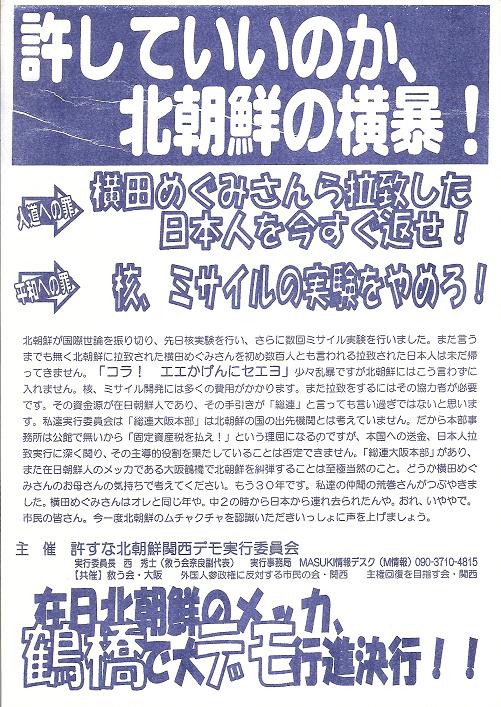 北朝鮮、総連に抗議し、街頭署名・ビラまき・デモを行いました。