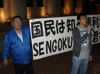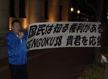 平成22年11月11日、増木重夫、藤島雄平は急遽「尖閣問題を考える市民の会」を結成し、第5管区海上保安本部(神戸市)で取調べを受けている「sengoku38」氏と海保の激励に帳の落ちかけた夕刻、神戸に出向いた。 私たちは多くは語らない。「sengoku38」さん、ゴクロウサン。国民は皆あなたの見方だ。あのビデオは国民が中国をどのように考えるかの1級資料だ。だから公開されるべきで秘匿すべきものではない。ゆえに貴兄は最高裁判例に従い罪はない。裁かれるのは国民の知る権利、ものを考える権利を踏みにじった菅政権である。今しばらく辛抱してくれ! 海保の皆さん。ビデオを見た。いつもあのような命がけの現場で働いている。そして我々の安全と治安を護ってくれている。本当にありがたい。ご苦労様です。 と言ってきました。 「尖閣問題を考える市民の会」 代表 増木重夫 5管職員「自分が流出」 警視庁など聴取へ 毎日新聞 11月10日(水)12時33分配信
