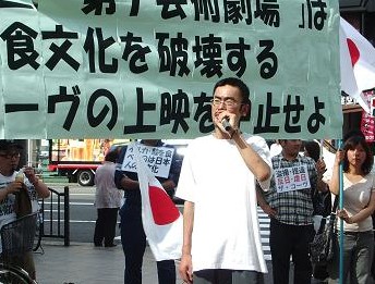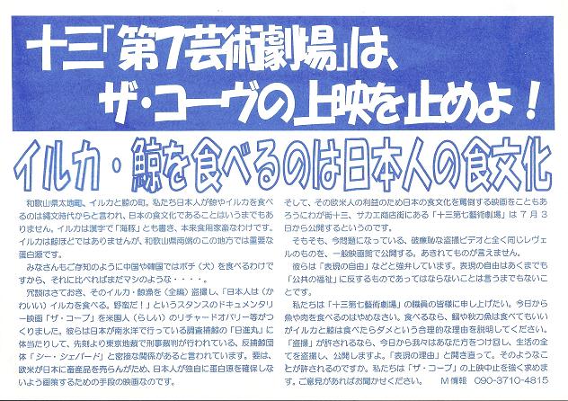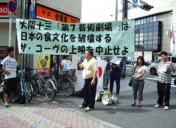 | 平成22年6月19日 大阪十三第7芸術劇場『コーブ』上映中止を求めて街頭演説・ビラ撒き | ||