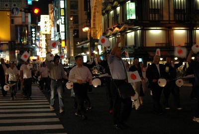 | H19-8-5 北京オリンピック反対デモ ダイエットにはチョー最適。血糖値の高いお父さん方。次回は是非ご参加を |