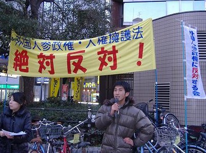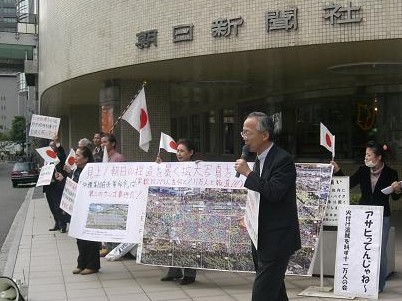 H19-11-9 嘘八百の朝日新聞へ抗議 マイクを持つは村田春樹氏(外国人参政権に反対する会)。私は右端 |