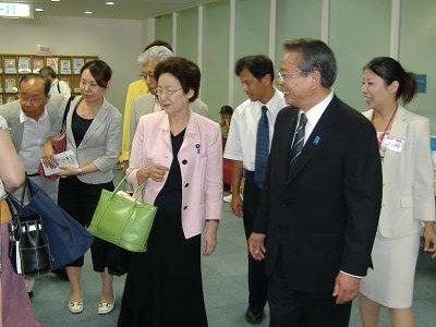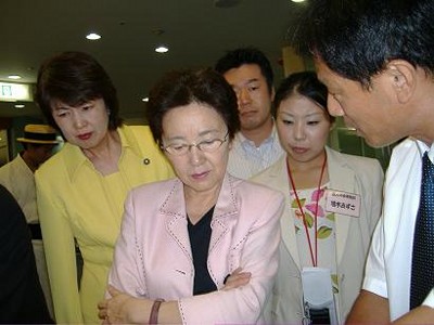 | H19-8-26 百人の会総会において山谷補佐官を「すてっぷ」に案内(本当は北川悟司前市議の後にくっついてウロウロ) 左の写真の向かって左は辻淳子大阪市議、奥は加田裕之兵庫県議、右が和田有一朗兵庫県議山谷先生。はめったにめがねをかけない。めがねをかけたときは・・・・!! |
