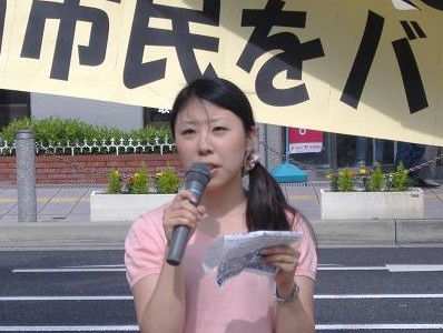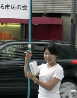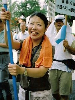 H19-8-5 デモの女王! デモも結構しんどい。風が吹くと飛ばされそう。 |