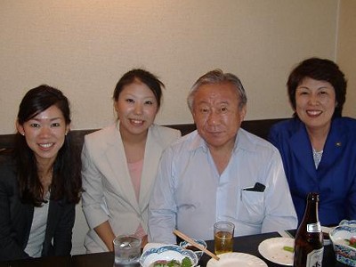 | H20-7-12 百人の会10th総会終了後の懇親会 向かって、山下亜緯子柏原市議、私、鴻池祥肇参院予算委員長、辻淳子大阪市議。 「大人学」を鴻池先生より個人教授!! これが怪しい?? 冗談はさておき、次期「文部科学大臣」には彼しかいないと思います。 |