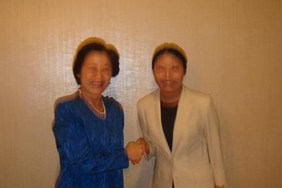 | H18(大4)-6-10 豊中商工会議所の会議室にて 前文部科学大臣 中山成彬衆議院議員 私が生涯写したtwo-ショットでもっとも緊張した写真です。足はガタガタ、のどはカラカラ、手は汗でびっしょり。 |