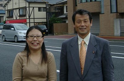| H18(大4)-6-10 三浦由紀大分市議会議員 ホテルアイボリーの玄関先にて |