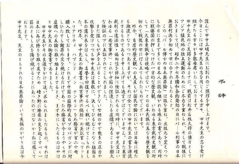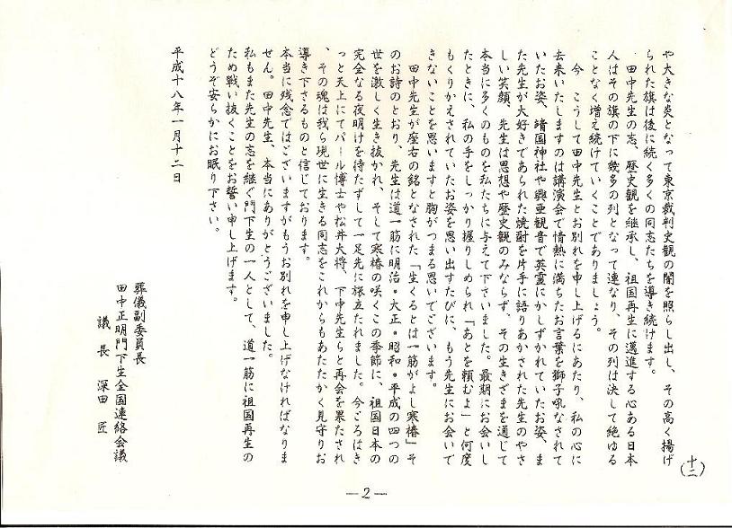 田中先生逝去弔辞 田中正明門下生代表 深田匠
