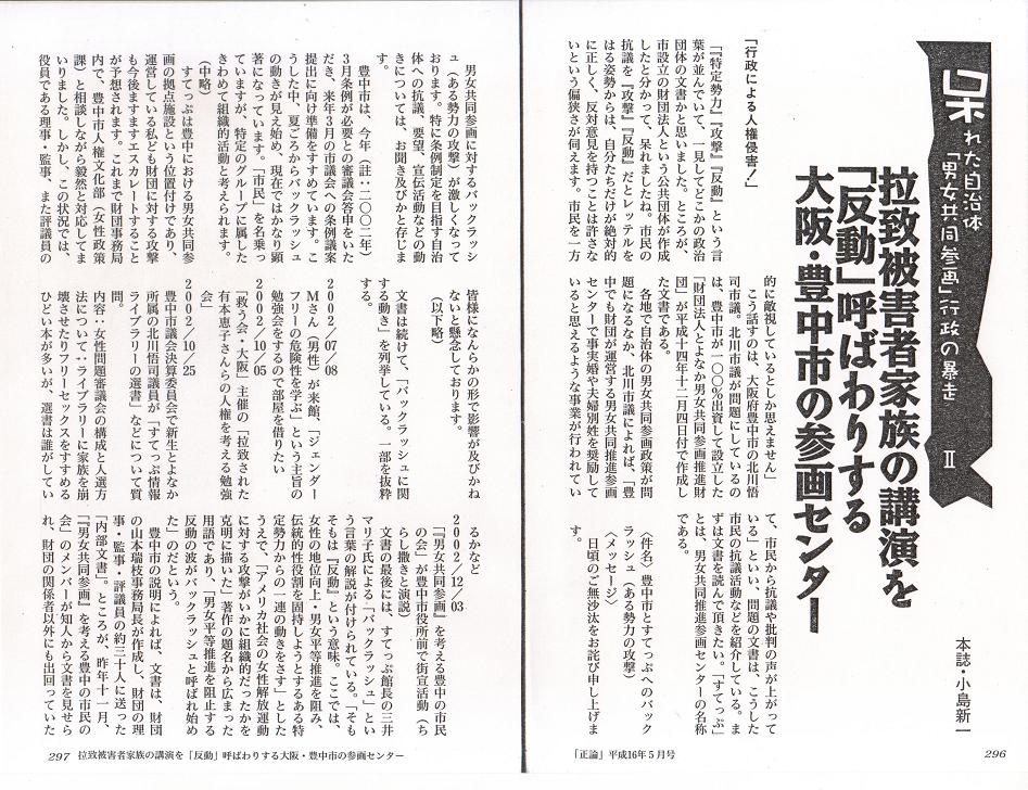 | 04/31 | 調査収集 | 豊中市立全18中学校 | 平成15年度公立中学校過激性教育副教材(ワースト3) | |