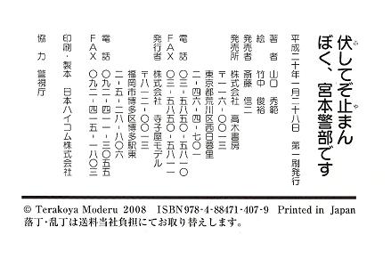 2007年2月 東武東上線ときわ台駅の線路内に入った女性を助けるために殉職された宮本警部。地域の人から「宮本さん」 と名前で呼ばれるほど親しまれていました。 職務に命をささげたお巡りさんの誠と勇気の物語です。 お父様お母様方へ ( あとがきにかえて ) 寺子屋モデル 山口秀範 子供たちに良い偉人伝を読ませたいという話題になると「昔の人は本当に 立派でしたね。今やヒーローなんて死語になりましたから」と多くの方が おっしゃいます。とんでもない、新しい英雄偉人は現代も続々と誕生しているのです。 問題はむしろ、素晴らしい行為・感動を与える生き方に私たちが気づいているのか、「現代の偉人」を讃えて次代に伝える意思を持っているかに懸っています。 二月六日以降の宮本邦彦警部の新聞報道を追いながら、宮本さんこそ「現代の偉人」に値すると直感しました。そして、多くの方々にお話を伺ううちに、宮本さんの人柄が明らかになり、私の確信は益々深まりました。 と同時に、宮本さんが大切にした一つ一つが、歴史上の先人たちの思いに繋がっていると感じられ嬉しくなりました。例えば、宮本家の団らんの様子からは、江戸時代の歌人・橘曙覧の次の歌を思い出します。 たのしみは妻子むつまじくうちつどひ頭ならべて物をくふ時 (食事時に一家揃って、妻子と仲良く頭を並べるようにして食べる時ほど楽 しいことはないなあ ) キヤンピングカーで各地を旅するという、実に長閑でほほえましい宮本さんの夢は果たせませんでした。この思いに通う、幕末の志士・平野國臣の歌を読んでみましょう。 君が代の、安けかりせばかねてより身は花守となりけむものを (今の世が平和で安泰ならば、<国事に奔走などせずに>花守となって樹木を 手入れし自然に親しみ、長閑な暮らしを楽しんだだろうに ) 熱情ほとばしる平野園臣と違って表面的には穏やかな宮本さんですが、いざとなったら職務のために生命を捧げました。そうした古今の「ますらお」たちが、勇気・使命感とともに、一方ではやさしい心根や、ささやかな願い( 花守・キャンピングカー) を持ち続けたことにほっと心が和みます。 一方、宮本さんのお父様の口癖「伏してぞ止まん」は、次に掲げる『古事記」の久米歌から連想されたものに相違ないでしょう。 みつみつし久米の子らが垣下に植ゑし山椒ロ疼く吾は忘れじ撃ちて し止まむ ( 自分たち、久ル米部の若者が屯営の垣根に植えた山椒の実を噛めば、口がひりひりとして戦意も高まる。さあ強敵を撃ち滅ぼさずにはおくものか。「みつみつし」は久米の枕詞 ) これは古代の戦いの歌ですが、宮本さんはお父様から伝えられた言葉を心に秘めつつ、子供の頃は怠け心や臆病さと葛藤し、警察官となってからは世の不正義や自己中心の風潮と戦い続けた人のように思われてなりません。そんな宮本さんの生涯をたどる時、三井甲之の次の絶唱が思い出されて来ます。 ますらをの悲しきいのちつみかさねつみかさねまもる大和島根を (遠い古から、次々に尊い生命が捧げられ、その積み重ねによってわが国日本は今も守られている ) こうして名歌をたどると、「現代の偉人」宮本さんが、時代を超えて「日本人の心」を受け継いでいることをしみじみ感じます。親子揃って宮本さんの生き方にふれていただければ幸いです。 『嵐の中の灯台』 ( 戦前の国語・修身教科書のリメーク、明成社刊 ) を監修した小柳陽太郎先生は、人間への不信をあおる現代の風潮に警鐘を鳴らし、「『不可思議な行為』 ( 私たちの常識では想像できないような英雄的行為 ) が現実にあり得ること、それがどんなにすぐれた精神によって成し遂げられたかを、私たちは謙虚に認め、その偉大な精神の前に頭を垂れなければいけない」 と、偉人伝に接する姿勢の大切さを説いておられます。 誰も真似できない宮本さんの「不可思議な行為」をどう受け止め、それを子供たちにどう伝えるか、私たちも謙虚でありたいと思います。そして私たちの伝え方次第では、「現代の偉人」に学んだ日本の少年少女が、挙って「未来の偉人」たらんと志すという、生気溢れる教育再生も夢ではないのです。 取材にご協力下さったご遺族の方々、伊藤哲朗前総監はじめ警視庁の関係各位に衷心より御礼申し上げます。また挿絵を担当頂いた竹中俊裕氏と、出版を快諾下さった高木書房の斎藤信二社長に感謝申します。 謹んで本書を、宮本邦彦警部の御霊に捧げます。 平成十九年十二月一日 |
